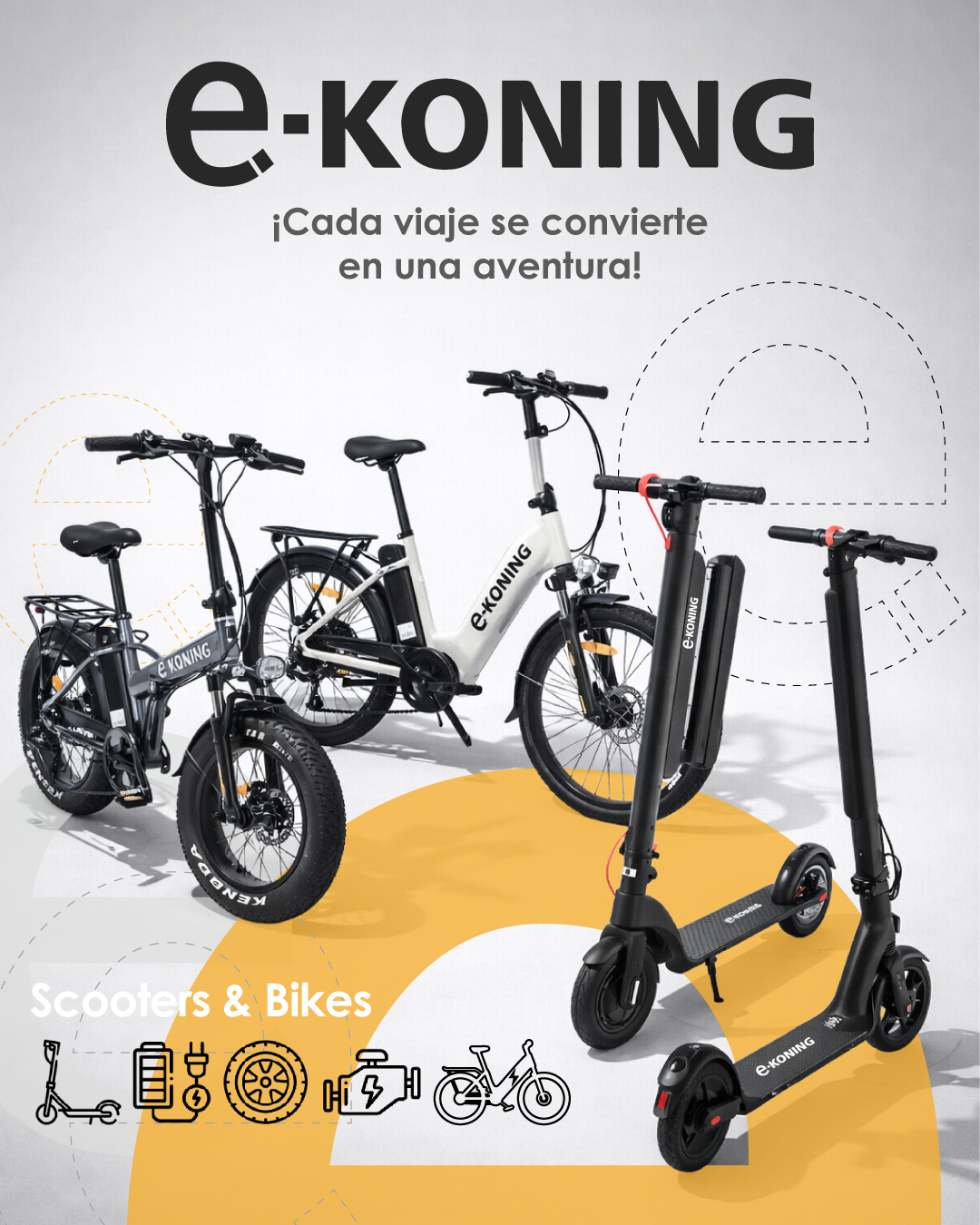 En e-KONING diseñamos y comercializamos bicicletas y scooters eléctricos que transforman la forma de movernos. No se trata solo de un producto, sino de la experiencia: más libertad, más autonomía y un uso inteligente de la energía en cada trayecto.