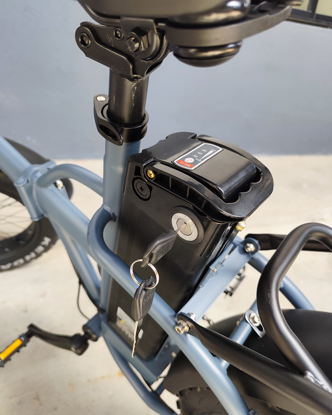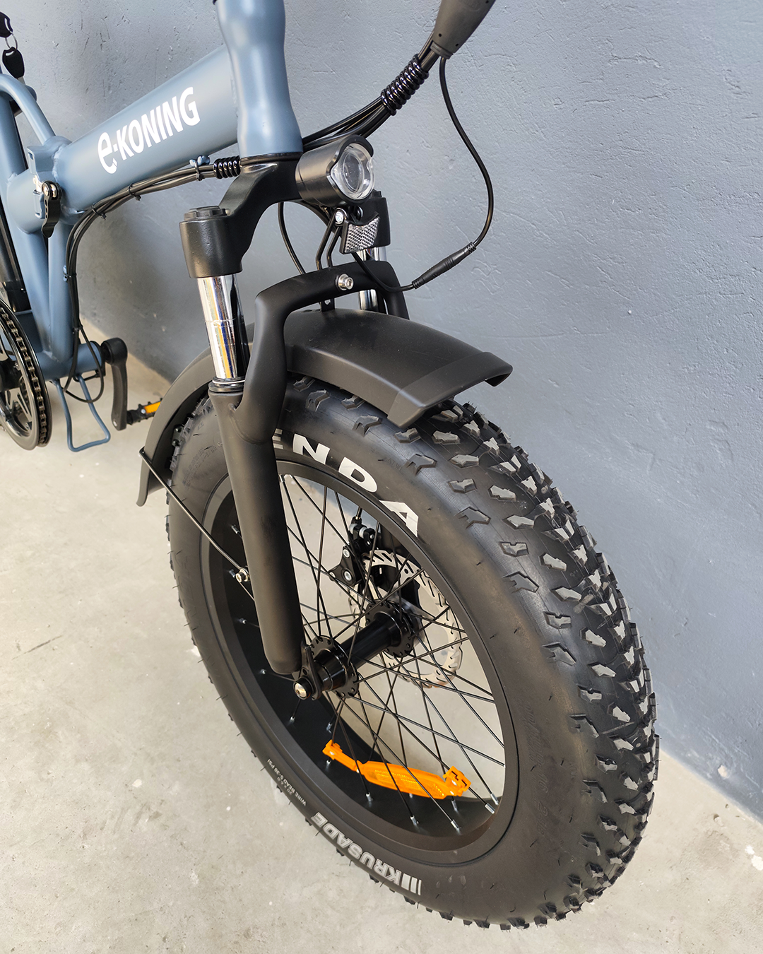 Cuenta con una batería de litio de 36V con hasta 45 km de autonomía, y un tiempo de carga de solo 6 horas. Sus cubiertas fat 20” x 4.0” y la suspensión delantera ofrecen estabilidad y confort en todo tipo de calles.
