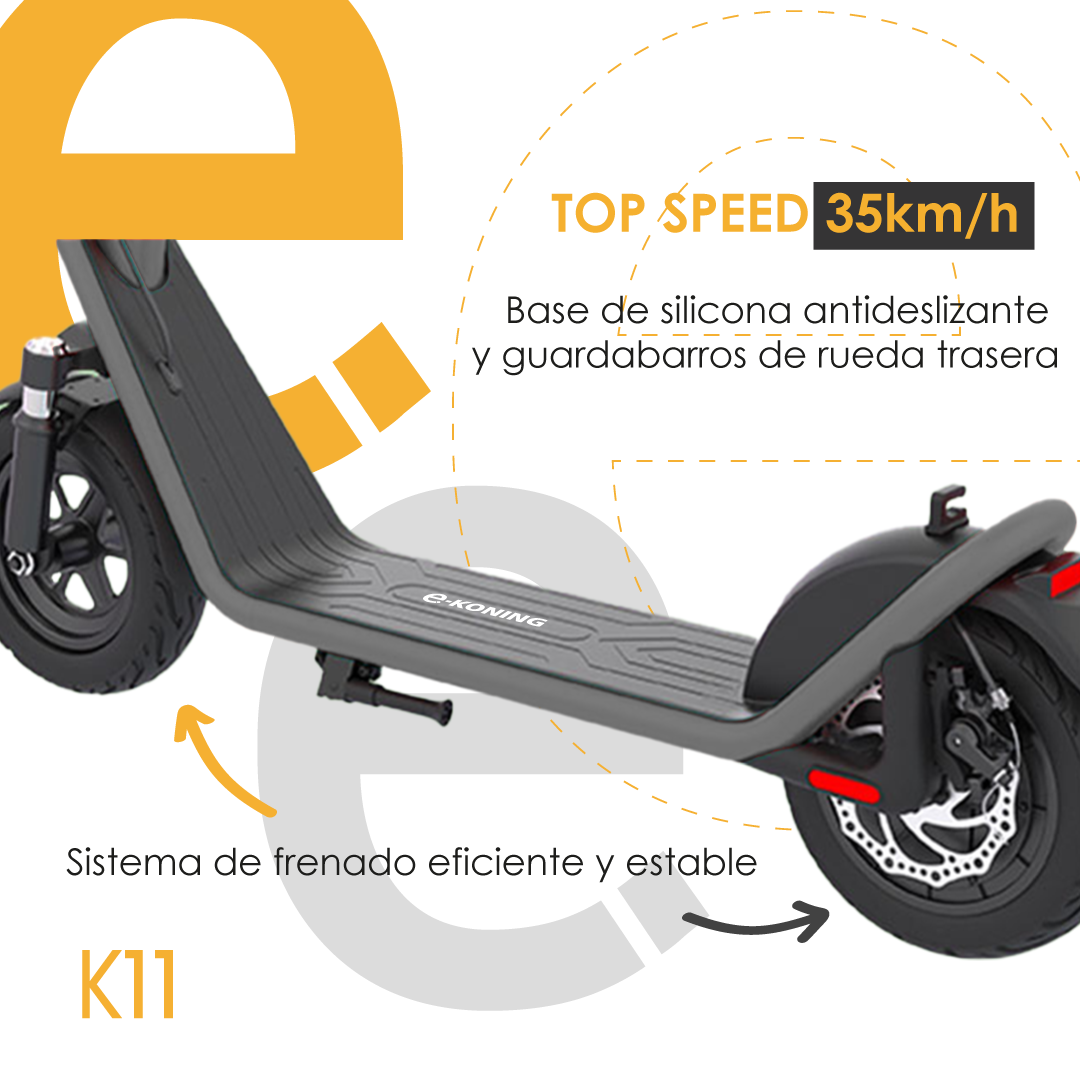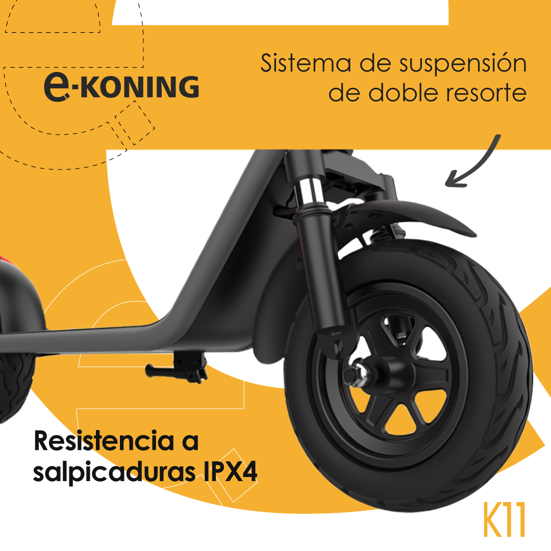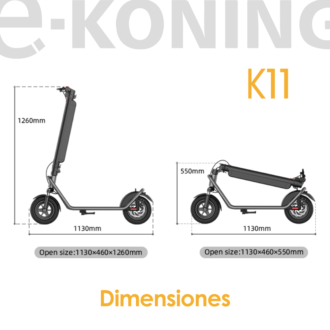 El monopatín eléctrico e-koning K11 redefine la movilidad urbana con su velocidad máxima de 35 km/h y una impresionante autonomía de 40/50 km. Diseñado para usuarios de 14 años en adelante, este modelo combina tecnología avanzada con un diseño plegable que facilita su transporte y almacenamiento.